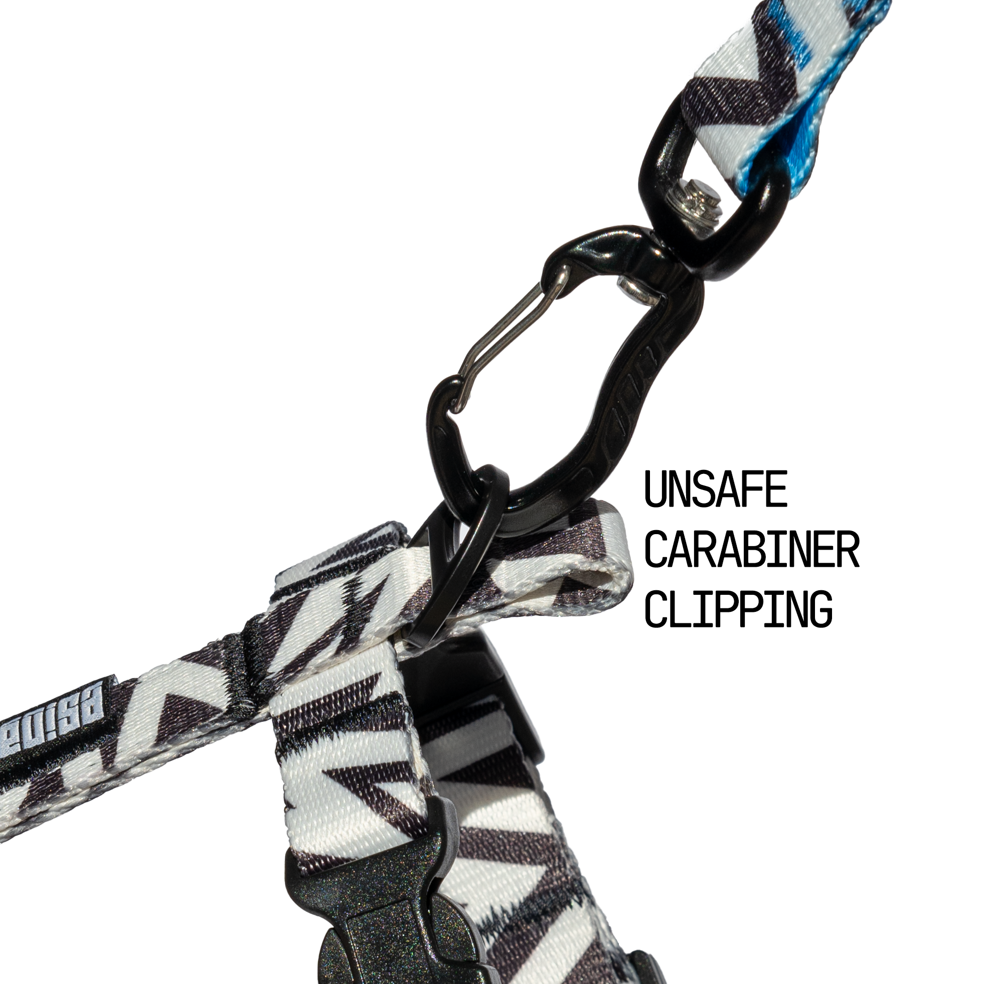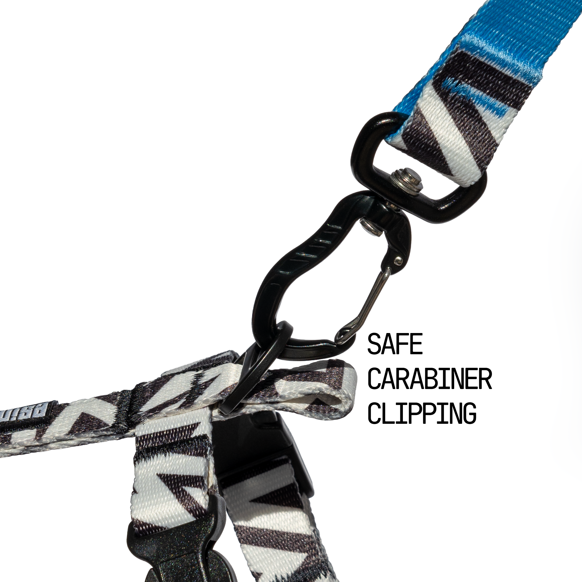 You can also loop the leash by hooking the carabiner of the same leash to the d-ring and sling it over your shoulder like a bag for those times when your dog is walking without a leash. Or attach one of our leashes with two carabiners. -