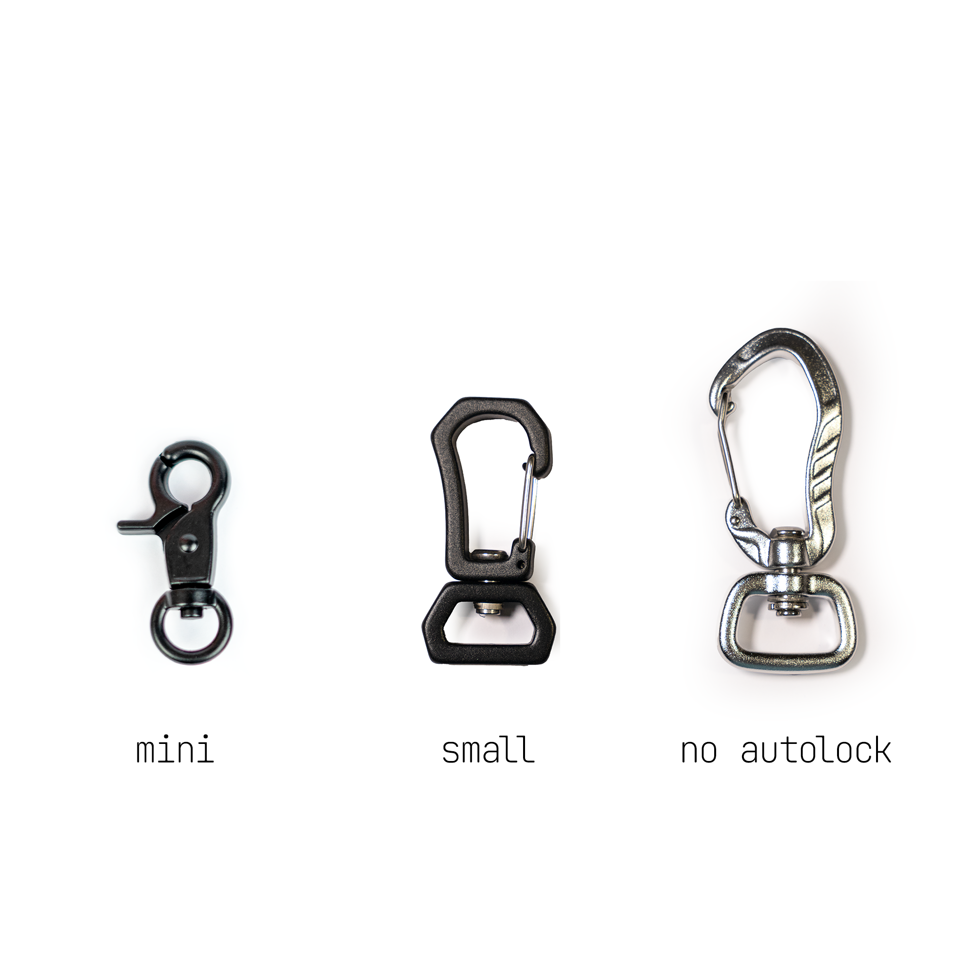 • For 16 mm, we’ve expanded the lineup: alongside the existing no-autolock and autolock versions, there’s now a lightweight Small carabiner, perfect if you prefer a wider leash with a smaller clip.